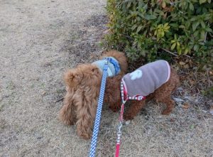 一緒に行くお散歩を通じて、早く仲良くなってくれるといいなー。