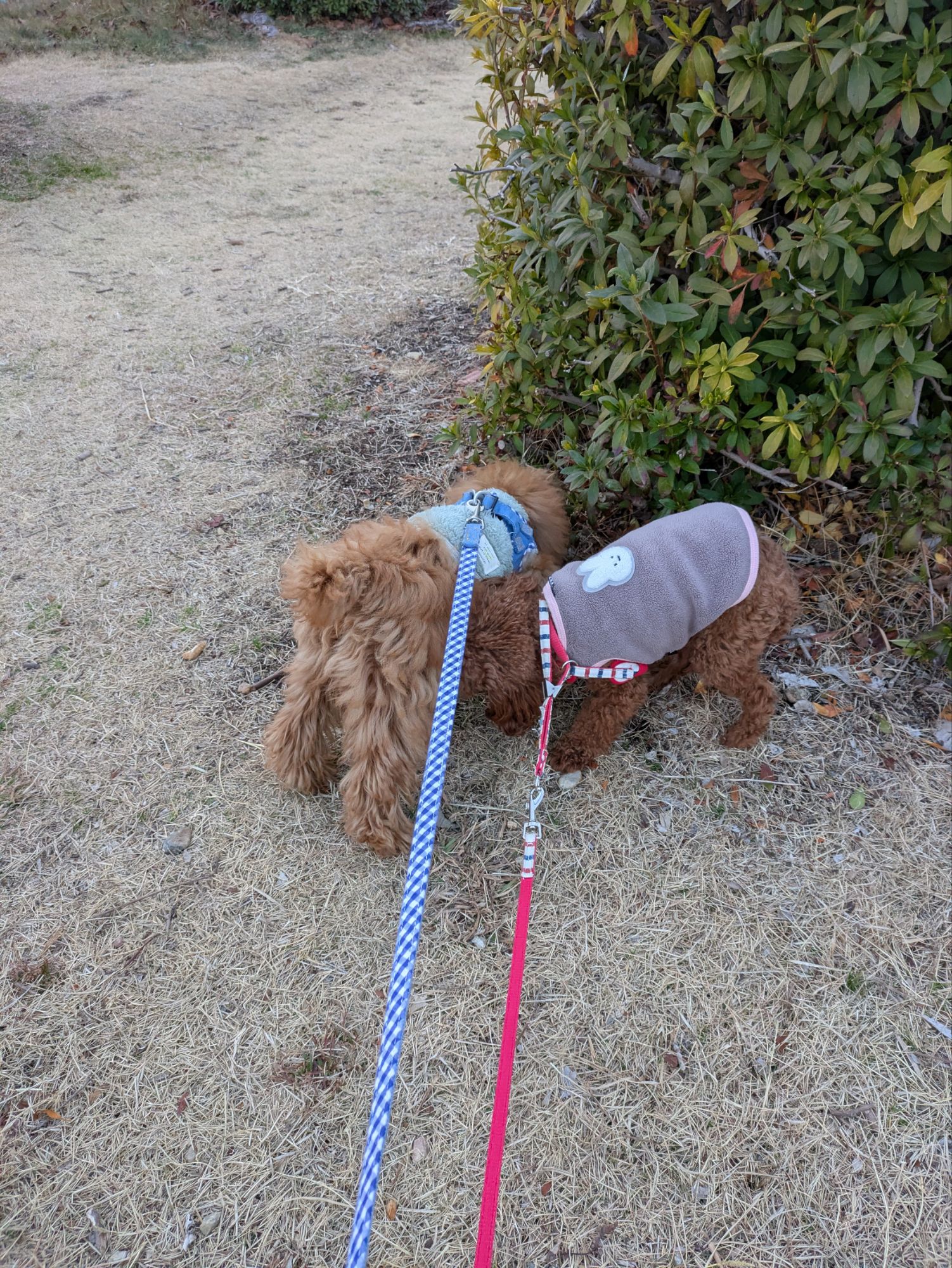 新米犬アンディが週末(2025/02/01〜02)で大きめの公園にお散歩、ドックランデビューを果たし、週明けの今日は普段のお散歩コースに行ってきました。