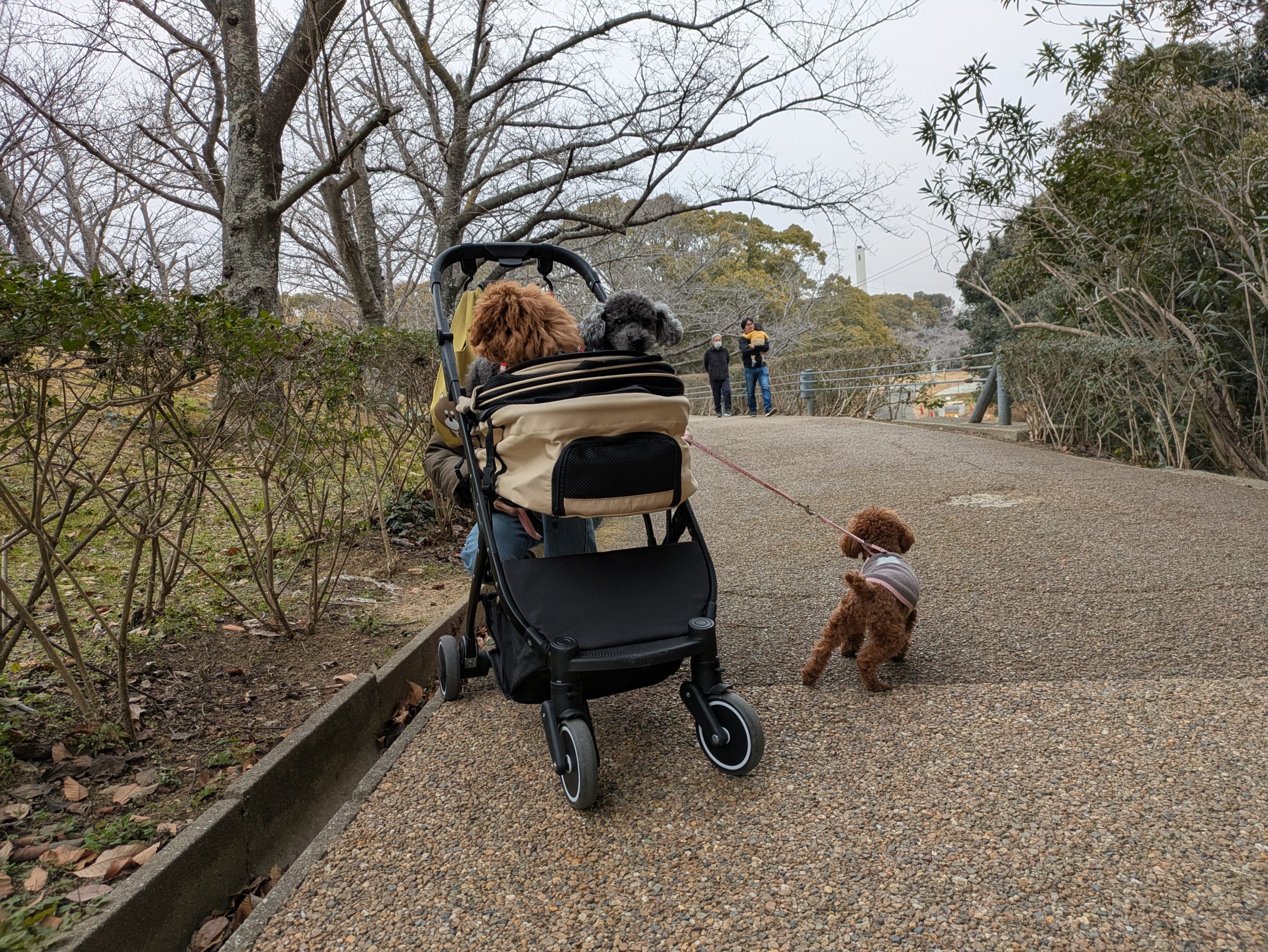 2025/02/01に我が家に来て1ヶ月が経ち、ワクチン接種が終わったアンディーを含めた3わんこで近くの石ヶ谷公園にお散歩に行ってきました。