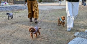 公園に着くと、愛犬たちは嬉しそうに歩いています。