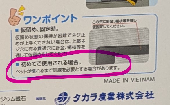商品の説明書にも「ペットが慣れるまで訓練を必要とする場合があります。」と書かれていました。