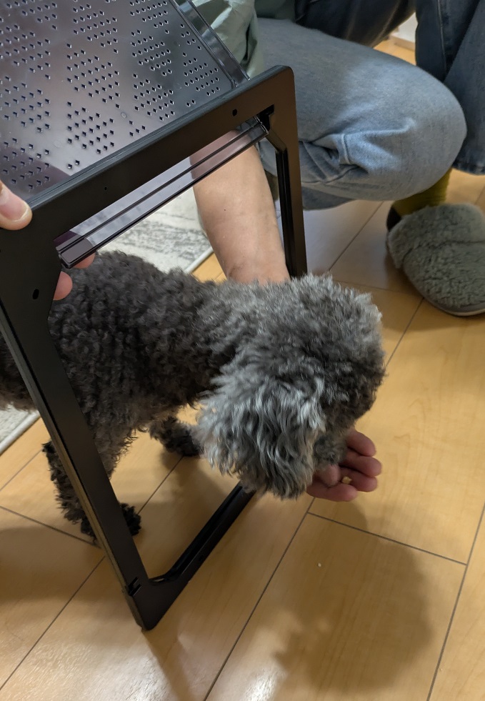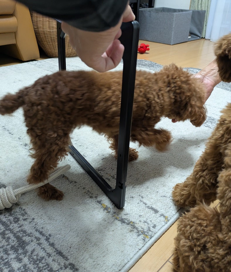 取り付け前にわんこたちにちょっと通り抜けの練習をしました(笑)