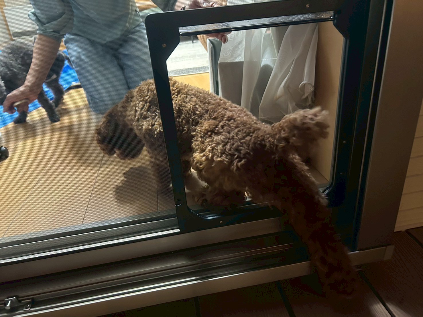 - 通り抜けることへの不安: 網戸が切り抜かれていること、そしてフラップを押し開けて通るという動作が、わんこたちにとって未知の体験で不安なのかもしれません。