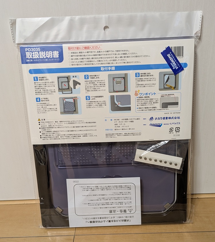 中には、ドア本体と取り付けに必要なネジなどが一式入っていました。