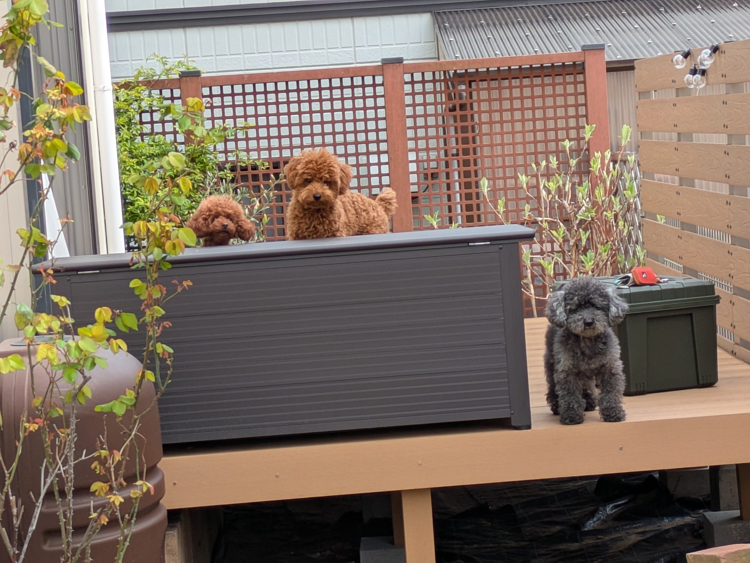 #犬 #多頭飼い #トイプードル #犬のいる暮らし #DIY #ウッドデッキ #階段 #人工木 #作業台 #庭 #ガーデニング
