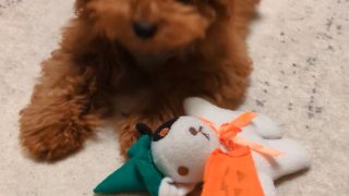 アンディ お誕生日おめでとう!2月17日はアンディの5ヶ月のお誕生日でした。みんなが揃ったときにお誕生日会をしましょうってことで、5ヶ月の記念に写真だけ撮りました。元気に遊んでるなーって思っていたら、急にスイッチが切れたようにすーすー寝てる...