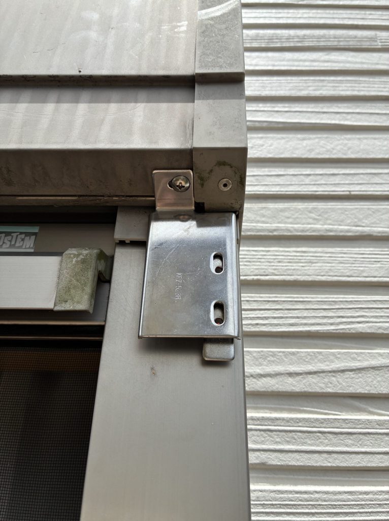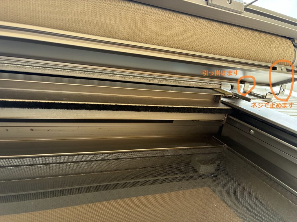 シャッターボックスのネジを外し、シャッターボックスの隙間から、取り付け部品を滑り込ませます。