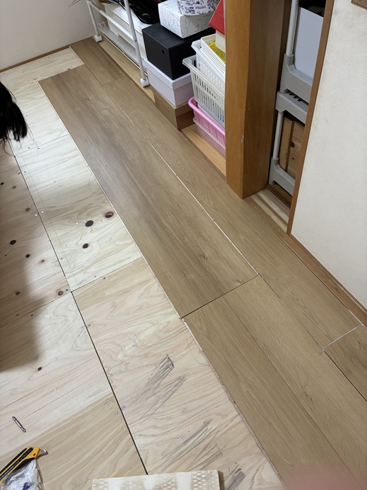 悩み抜いた結果、手軽に扱えて、隣接するリビングの床とも似ているフローリング材を選びました。