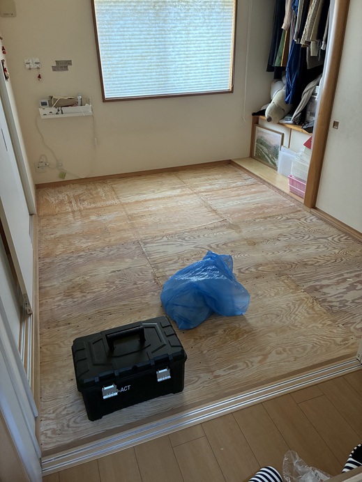 15年分の歴史が詰まった畳を剥がすのは少し寂しい気もしましたが、新しいお部屋への期待の方が大きかったです。